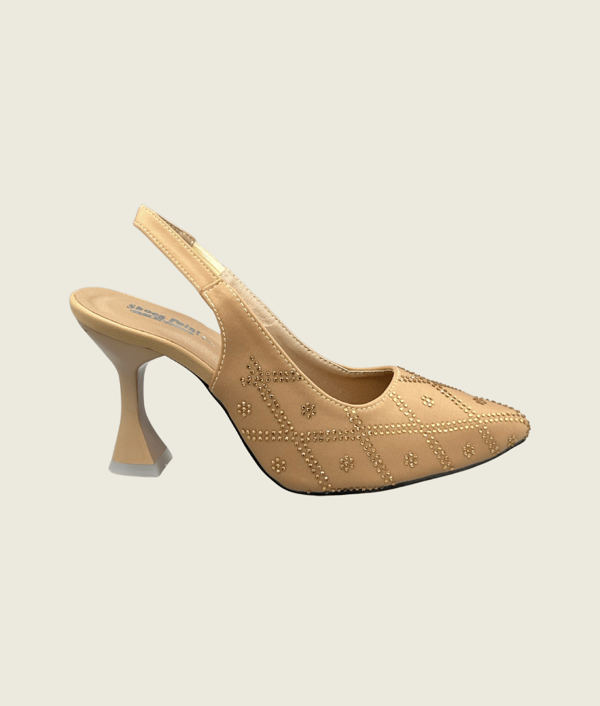 Step into timeless sophistication with Sandalique’s Beaded Elegance Slingback Heels — a perfect blend of grace and glamour. Featuring a pointed toe design, intricate beaded patterns, and a sculpted block heel, these heels offer a flawless balance between modern style and traditional charm. The elastic slingback strap ensures a comfortable and secure fit, making them ideal for long events or festive gatherings. Available in Black and Mustard, these heels pair beautifully with both Eastern and Western attire.