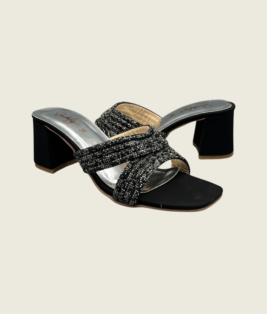 Add a touch of timeless elegance to your look with Sandalique’s Twilight Grace Block Heels, a perfect mix of comfort and sophistication. Designed with delicately beaded crossover straps and a glossy square toe, these heels bring understated glamour to both festive and formal looks. The sturdy block heel provides effortless balance, while the cushioned insole ensures lasting comfort. Available in Black and Golden, these heels pair beautifully with both traditional and modern outfits.